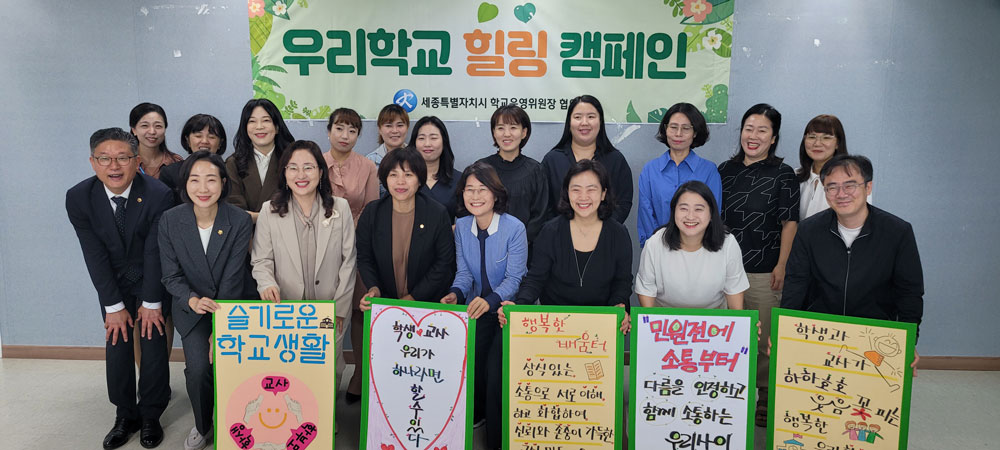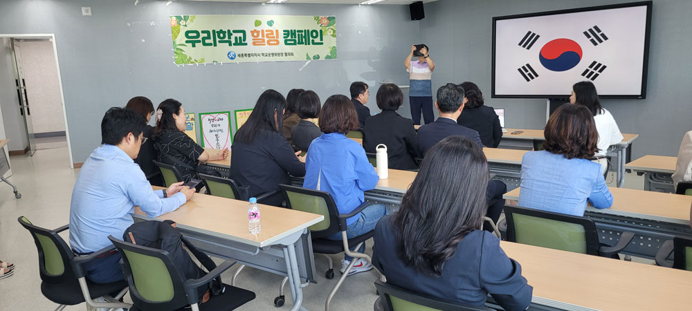 세종시 학교운영위원회협의회(회장 박현숙)와 세종시의회 의원, 세종시교육청 직원 등 20여명은 22일 세종학부모지원센터에서 교육환경 회복을 위한 ‘우리학교 힐링 캠페인 발대식’을 가졌다.