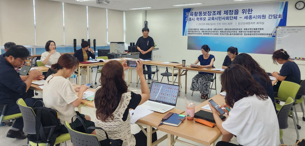 한편, 이날 간담회는 전교조 세종지부, ㈔세종여성, 세종교사노동조합, 세종교육회의, 세종교육희망네트워크, 세종교원단체총연합회, 세종마을교육연구소, 세종새로운학교네트워크, 세종실천교육교사모임, 세종지속가능발전협의회, 세종참여자치시민연대, 참교육을위한전국학부모회 세종지부 등 12개 단체와 세종시교육청 관계자 등이 참석했다.