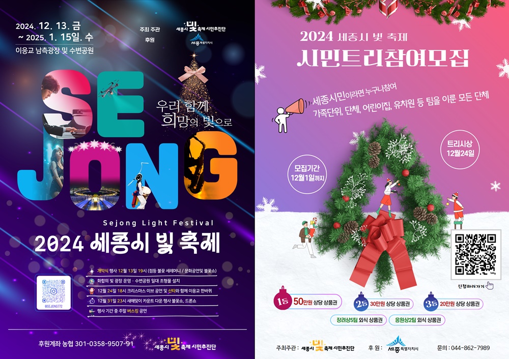 세종시 빛축제 시민추진단(이하 ‘시민추진단’)은 오는 12월 13일 ‘2024년 세종시 빛축제’의 막을 올린다고 27일 밝혔다.